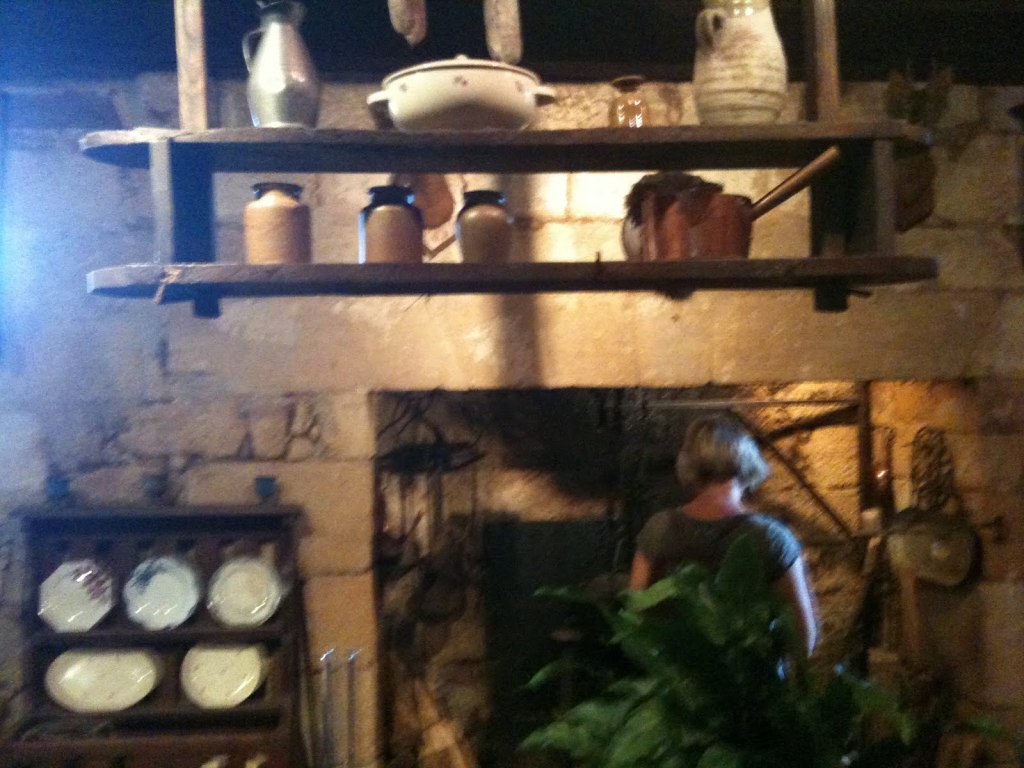 Puis nous avons visité la maison forte de Reignac. Ce n’est pas sur la carte. C’est Erica, au gîte « Les Maurelles » qui nous l’a suggéré et elle avait raison car cela valait la peine de la visiter. Château du XIVe siècle construit à même la roche, il est construit sur une ancienne résidence de Cro-magnon. Plusieurs pièces du château sont insérées directement dans les multiples grottes. Au moment de la visite, c’était plutôt frais dans le château mais, on peut se demander si c’est difficile de le réchauffer en hiver.