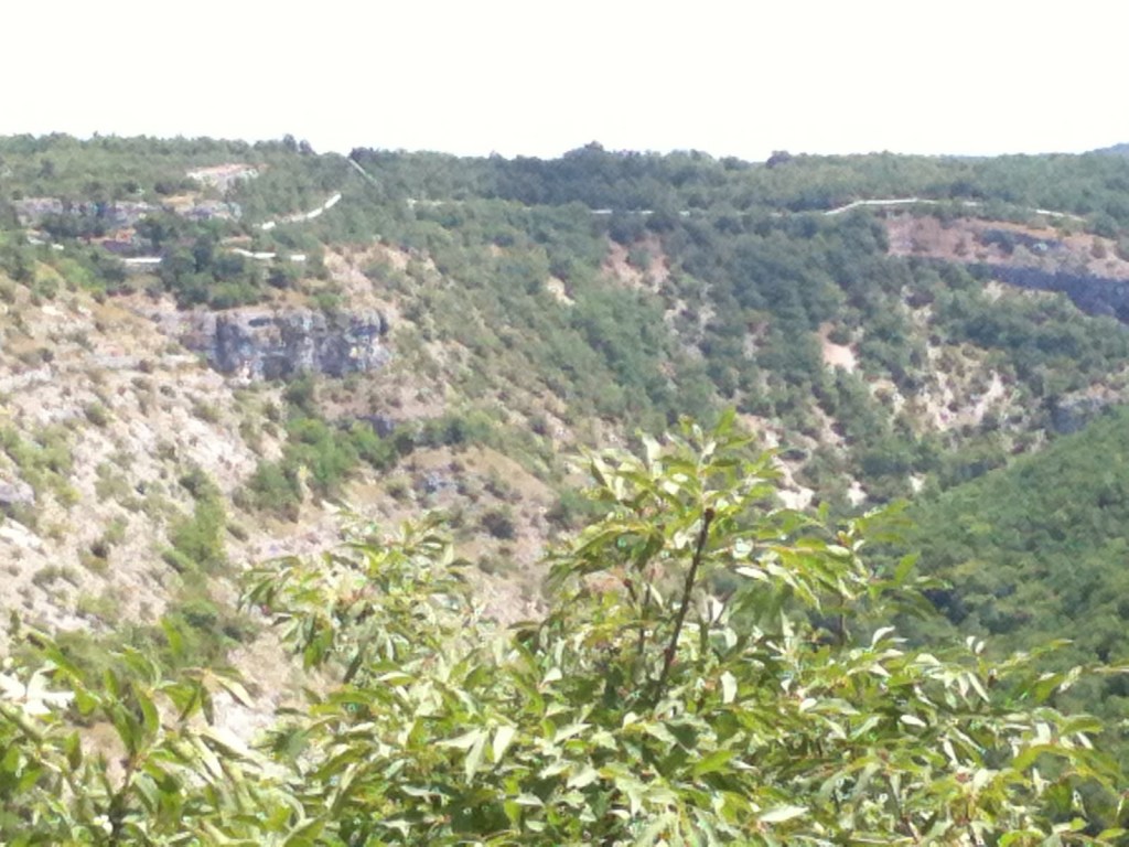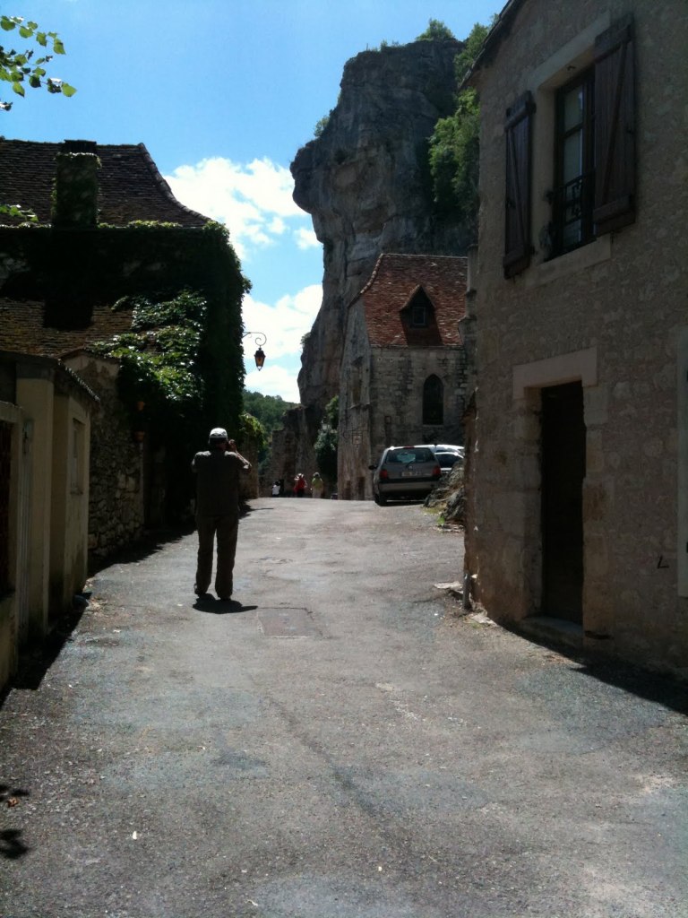 Puis nous sommes descendus vers le sanctuaire par le chemin de la croix qui descend en zigzag, la seule manière d’offrir une pente acceptable. Le sanctuaire est le lieu saint de Rocamadour. On parle de 226 miracles qui auraient eu lieu depuis le début au 12e siècle. Il y a même un escalier de 200 marches que les pèlerins montaient à genou à une époque lointaine. Peu attirés par ce genre de démonstrations, nous avons vite trouvé l’ascenseur qui descend à la cité médiévale dont l’unique rue est longue d’un kilomètre. Bien que nous ayons magasiné et trouvé quelques souvenirs, nous étions quand même un peu déçus par notre visite, surtout par l’atmosphère de la place qui était un peu trop touristique sans toutefois être accueillante; l’endroit manque de charme malgré le potentiel inexploité. Ça n’a pas le cachet de Sarlat ni du Vieux Québec. Sa publicité est surfaite.