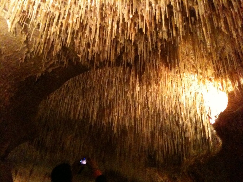 Puis, alors que nous sommes au comble du ravissement, on nous fait visiter une deuxième grotte, plus profonde, toute aussi belle avec ses stalagmites, ses stalactites ni colonnes. Nous y trouvons, tout au fond, des dessins paléolithiques. C’est l’émotion totale. On y voit des mammouths, des cerfs, des boucs et quelques représentations d’hommes qui ont probablement été dessiné par des hommes de Cro-Magnon, il y a 20 – 25,000 ans.