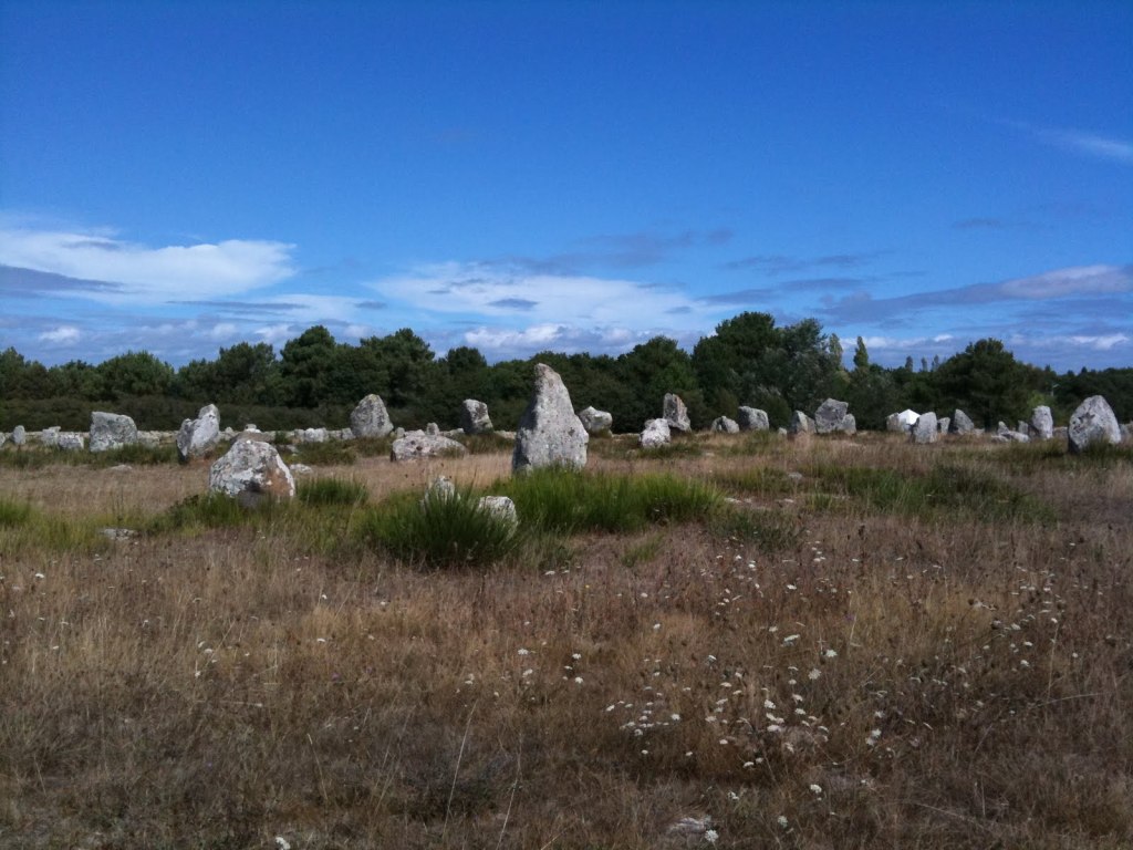 Pour commencer ce texte, je suis assise, non pas dans une église comme d’habitude, mais sur une roche à côté d’un champs où se trouvent des alignements de menhirs de Ménec à Carnac. Denis est parti faire des photos à partir de la route voisine. Il fait beau. Je finirai probablement cet article dans un Quick (C’est comme un McDo) où l’internet est assez puissant,