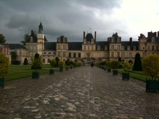 Hier, nous avons visité le château de Fontainebleau. J’ai été frappée par la similarité entre Versailles et Fontainebleau. Nous avons marché, de salle en salle, de la chambre d’un roi à la chambre d’une reine jusqu’à la chambre de la maîtresse du roi (et oui!). S’ajoutent des salles de repos, du conseil, d’armes, de multiples salons, et d’autres. Imaginez ! Nous avons marché deux heures pour ne voir que la moitié des salles C’est grand; très grand.