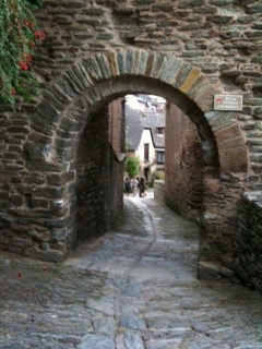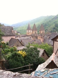 Aujourd’hui, nous avons changé nos plans. Nous devions visiter Conques demain, vendredi. Mais nous avions peur de manquer de temps car la route pour Limoges, notre destination de vendredi est longue. Alors, nous sommes partis à 7 h 35 de Clermont-Ferrand pour visiter Conques. Nous avons bien fait car nous avons passé une bonne partie de la journée dans ce village médiéval qui a été construit en flanc de montagne tout autour de l’Abbatiale Sainte-Foy. La vocation de cette institution était l’accueil des pèlerins et le culte des reliques de Sainte-Foy.