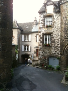 Ce matin, quand nous avons vu le magnifique ciel bleu, de la fenêtre de notre chambre, nous avons été surpris par la météo. Un faible 9° C. Brr ! Nous sommes quand même partis tôt pour faire un petit détour de 40 kilomètres vers le Parc naturel régional des volcans d’Auvergne. Nous voulions visiter la petite ville de Salers ( prononcé « salaire »). On l’a construit au 11e siècle, autour d’un château qui n’existe plus, dans le flanc d’une colline à 950 mètres d’altitude. La ville est surtout connue pour ses bâtiments datant de la renaissance. Nous y avons marché pendant plus d’une heure, avant de casser la croûte à la brasserie « Chez la préfète ».