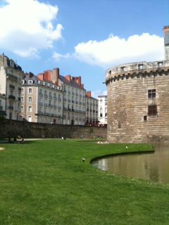 Aujourd’hui, quand on regarde un plan de la ville, on remarque rapidement les espaces récréatif. Sur le terrain, les touristes que nous sommes sont ravis par l’immensité des lieux. Il y a de nombreux parcs verts et fleuris, les rues sont larges et bordées d’immenses platanes. Nous pouvons admirer facilement les bâtiments de la renaissance et de l’époque moderne, de couleur blanche sur fond de vert. Le ciel bleu et la brise venant de la Loire ne font que rehausser cette sensation de paix en ce beau dimanche après-midi. Sur les prochaines photo, on voit les remparts du château des Ducs de Bretagne.