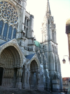 Nous profitons donc de l’avant-midi ensoleillé pour aller visiter la cathédrale de Chartres, notre seule visite prévue aujourd’hui. Comme vous le constatez, nous sommes de retour avec le moyen-âge. Voir le site web suivant pour plus d’information sur la Cathédrale de Chartres