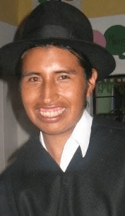 Ernesto : Il vient d’être élu président de la Communidad de Chilcapamba.  Il a remplacé Juanita. Il est très occupé parce que tout le monde le consulte. Il a lui aussi des projets comme l’eau potable, l’éducation des jeunes, la transposition du Kichwa, langue orale, en langue écrite, le football (notre soccer), la culture biologique etc.