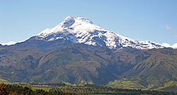 Ha! j’allais oublier! Alfonso est aussi président de l’Association pour la protection de la réserve naturelle Cayambe Coca qui regroupe plus de 40 communidadesCayambe est un des nombreux volcan actif, haut de 5 785 mètres, situé dans la province du Pinchicha, à 70 kilomètres au nord-est de Quito. Il est situé sur la ligne équatoriale. Nous n’avons pas visité ce volcan et le ciel couvert nous a empêché de le voir, même de loin. Voici tout de même une belle photo tiré de Wikipédia. Cela donne envie d’y grimper. Vous trouvez pas?
