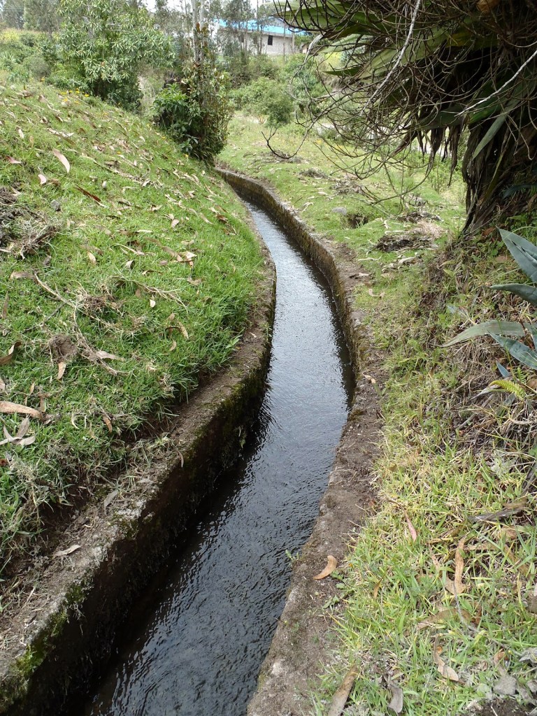 Aujourd’hui, c’est une deuxième journée de minga, une troisième journée de travaux communautaires pour nos jeunes. Tous les hommes et les femmes du village commencent à travailler très tôt, pour nettoyer les canaux d’irrigation qui amènent l’eau (non potable) aux maisons pour le bétail, le jardin et le lavage. Les photos suivantes montrent un des canaux avant le nettoyage et après.