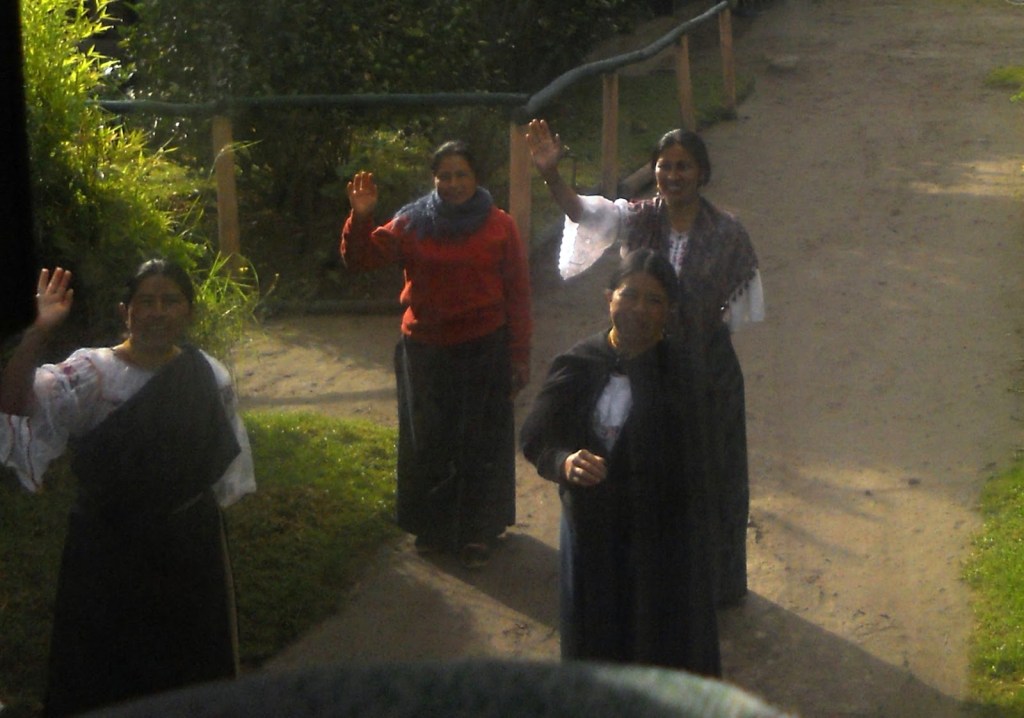7 h 30. Nous sommes tous dans l’autobus; le décompte a été fait. Nous ne laissons personne derrière. Thierry a expliqué le déroulement de la journée. Nous l’avons écouté sans parler, notre coeur encore accroché à 2600 mètres d’altitude, quelques parts entre les volcans Imbabura et Cotacachi, dans un village extraordinaire appelé Chicapamba.