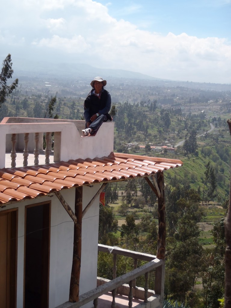 Nous étions en route vers Baños. Le programme de la journée prévoyait un repas du midi dans un gîte indigène au village Salasaca dans la province du Tungurahua. La visite prévoyait une démonstration de l’artisan Alonso Pilla, dont la famille est propriétaire du gîte Hostal Runa Hasi. Nous avons eu un bonus car on nous a offert aussi une marche d’une heure dans le village où nous avons appris sur l’origine des Salasacas et leur mode de vie.