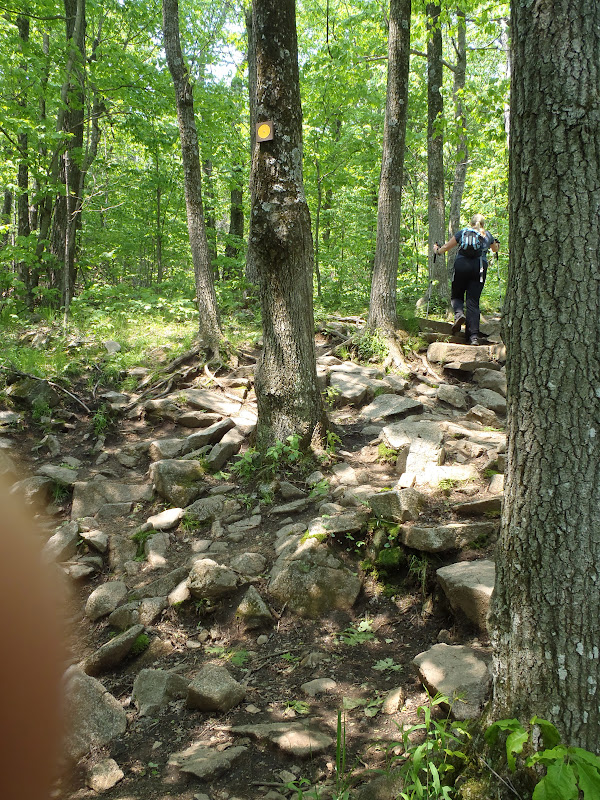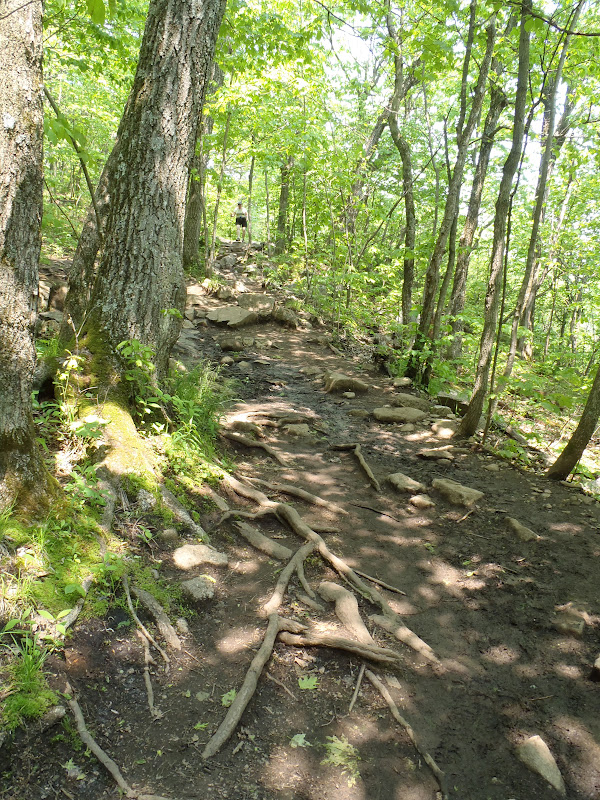 Comme le sentier était maintenant en pente douce, j’ai ajusté ma marche à ma vitesse de croisière, ni trop vite, ni trop lentement mais avec des pas d’une grande régularité. J’ai ainsi laissé mon esprit vagabonder en gardant mon cerveau juste assez réveillé pour surveiller les roches et les racines qui auraient pu me faire trébucher et pour répondre aux nombreux bonjours des gens qui croisaient mes pas.