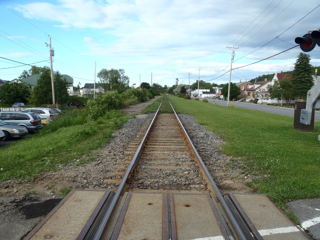 Le chemin de fer qui coupe le village en deux. Il est encore utilisé et on entend, deux fois dans la nuit, le sifflet assourdissant. S’ajoute le bruit clair du contact métal à métal entre les roues des wagons et des rails ainsi que le ronronnement du moteur diésel qui tire une quarantaine de wagons.