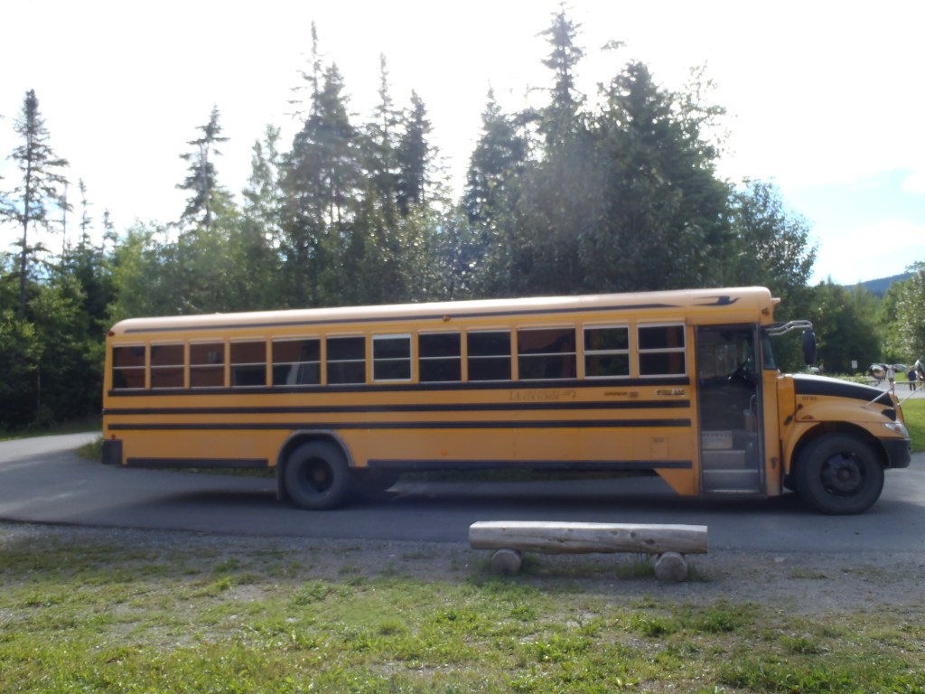 À 9 h, tous les matins d’été, l’autobus scolaire transporte les marcheurs vers la montagne. Il y a 42 kilomètres de chemin de gravelle pour nous rendre dans le secteur de la Galène. Ça ne paraît pas très loin. Il est tout de même préférable de payer les 17 $ demandé pour prendre l’autobus. La route est poussiéreuse et rocailleuse. Les crevaisons sont fréquentes et… il n’y a pas de réseau pour appeler une dépanneuse.