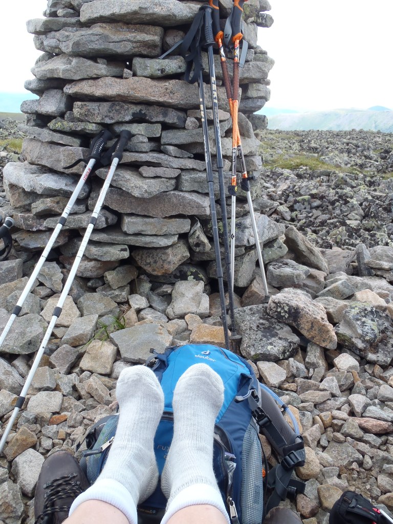 Puis nous sommes arrivés au sommet. Nous ressentions enfin la satisfaction d’avoir réussi. Nous avions faim et c’est un peu à l’abri du vent, derrière un tas de roches, que nous avons pris un petit moment de repos. La vue est belle et nous n’avons pas assez d’yeux pour tout voir autour.