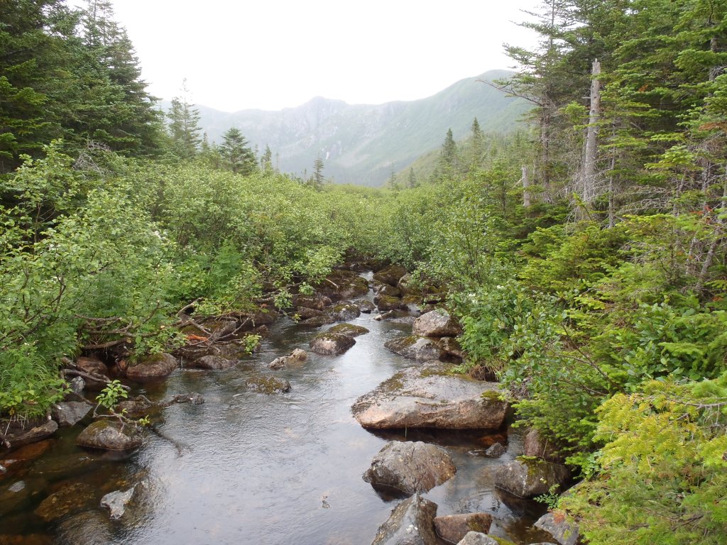 Un vingt minutes de marche, sous la pluie. Ma situation ne m’inquiétait pas beaucoup. Mon inquiétude allait plutôt pour Denis qui était en train de descendre du Xalibu. Cette petit pluie fine et ce vent garantissait une descente à la fraîche et sans insecte. Mais, il descendrait en partie dans un torrent. Ça c’est beaucoup plus compliqué. Le sentier fait sept kilomètres et la dénivellation est de 540 mètres. Ouch! Ça fait mal aux genoux. De plus, quand il pleut, l’eau prend toujours le chemin le plus facile. Elle descend donc de la montagne directement par le sentier, le rendant boueux et glissant.