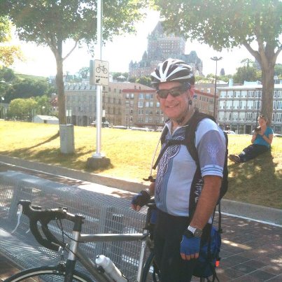 Denis était fatigué, mais très heureux. Il avait raison. Il avait accompli 144 kilomètres au compteur dans cette deuxième journée, pour un total de 272 kilomètres en deux jours. Une réussite. Une belle randonnée. Sur la photo prise de lui, dans le vieux Québec, on voit le Château Frontenac en arrière plan.