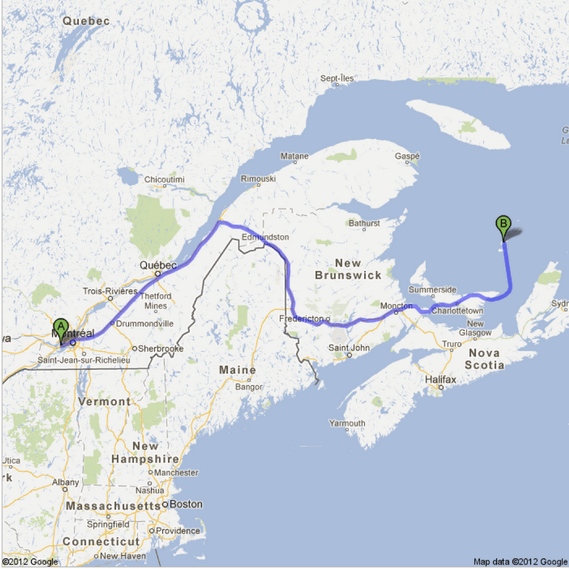 Les îles de La Madeleine sont à 1340 kilomètres de notre lieu de résidence. Ça prend d’abord deux jours en auto pour traverser une partie du Québec, le Nouveau-Brunswick et l’Île du Prince-Édouard. Puis, le traversier nous amène aux îles en quatre heures ou plus.