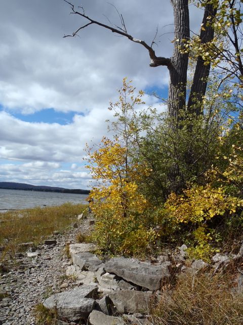 Aujourd’hui, notre escapade d’apparence inorganisée nous a conduits au bord du lac des Deux-Montagnes. Nous avons exploré le bord de l’eau qui nous paraissait différent de ce que nous connaissons si bien au parc-nature du Cap Saint-Jacques. Cette pointe de terre qui pousse dans le lac des Deux-Montagnes s’appelle la Pointe-aux-carrières. Elle est remplie d’histoires qui nous rappelle autant le troc avec les Autochtones sous le régime français, la drave par sa proximité à la rivière des prairies et le fleuve, les carrières de roches et l’aménagement en plage dans les années 1930.