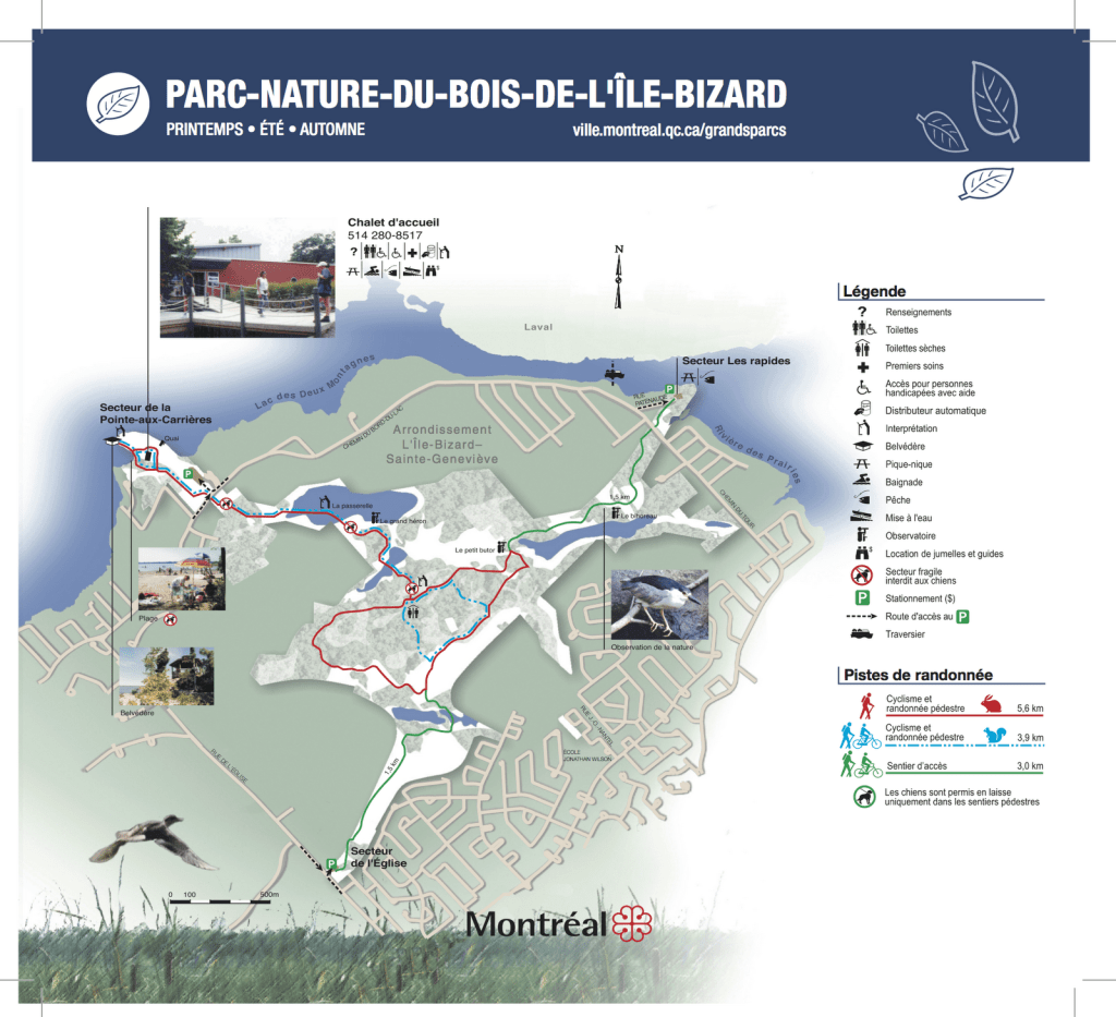 Au printemps et à l’automne, le parc est un arrêt privilégié pour la migration des bernaches et des oies. Il faut visiter ce parc avec un appareil photo et des lunettes d’approche. Le parc de 201 hectares offre 10 kilomètres pour la randonnée pédestre et le vélo, comprenant un long belvédère qui serpente dans le marais. Les prises de vues sont extraordinaires, avec un accès au lac des Deux-Montagnes et un autre à la rivière des prairies.