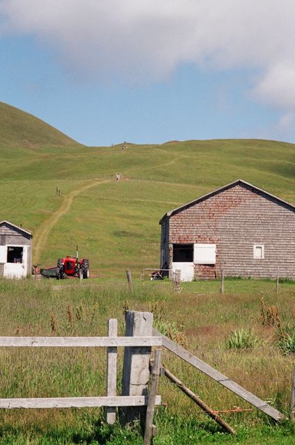 Soudain, nous sommes arrivés au bout d’un champs. On se croirait en Écosse, où pour accéder à la montagne, il fallait passer chez l’habitant.