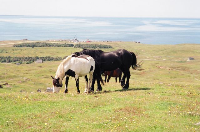 Il a fallu également passer par-dessus une clôture, par le biais d’un escabeau installé pour les bénéfices des marcheurs et pour la protection des animaux. Cette clôture divise l’île en deux parties. Celle des humains comprend la partie basse et couvre environ le tiers de l’île. On y retrouve l’ensemble des maisons . De l’autre côté, c’est le paradis des animaux, surtout les vaches et les chevaux.