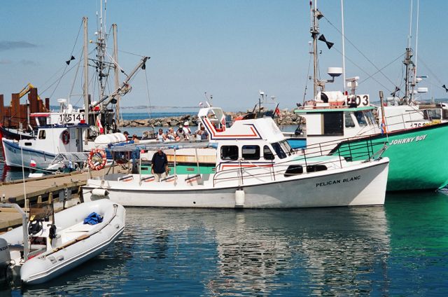 Les deux billets coûtent $24 chacun (prix de 2003), avant taxes bien sûr. Nous avons embarqué sur le Pélican blanc, un petit bateau qui pouvait transporter une vingtaine de passagers vers l’île d’Entrée.