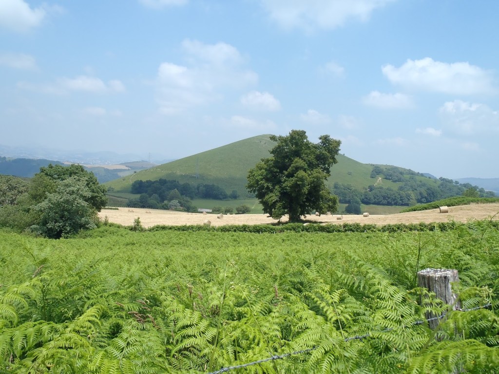 Nous avions choisi de faire une balade de sept kilomètres en faisant le tour du pic d’Arradoy. 260 mètres de dénivellation. Une petite marche, selon les gens de Saint-Jean-pied-de-Port. Hum ! Vous vous rappelez que nous n’avons pas d’auto. Alors à quelle distance est le début de la piste ? Réponse basque : « C’est pas loin et ça se fait à pied. » Mais encore, combien de kilomètres ? Réponse basque : « À peu près deux. » Nous avons vite compris que deux kilomètres basques ressemblent beaucoup aux « 10 minutes de marche parisienne : c’est très long ! Alors nous avons marché deux kilomètres, puis deux autres. Un peu inquiets, nous nous sommes demandé à des locaux où était le sentier. Réponse basque : un point d’interrogation au milieu du visage. Mais il est censé y avoir un pont ? Réponse basque : “Oui il y a bien un pont quelque part par là.”