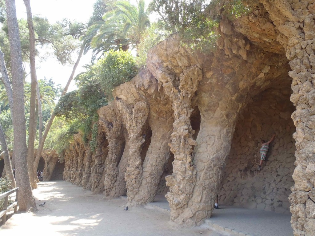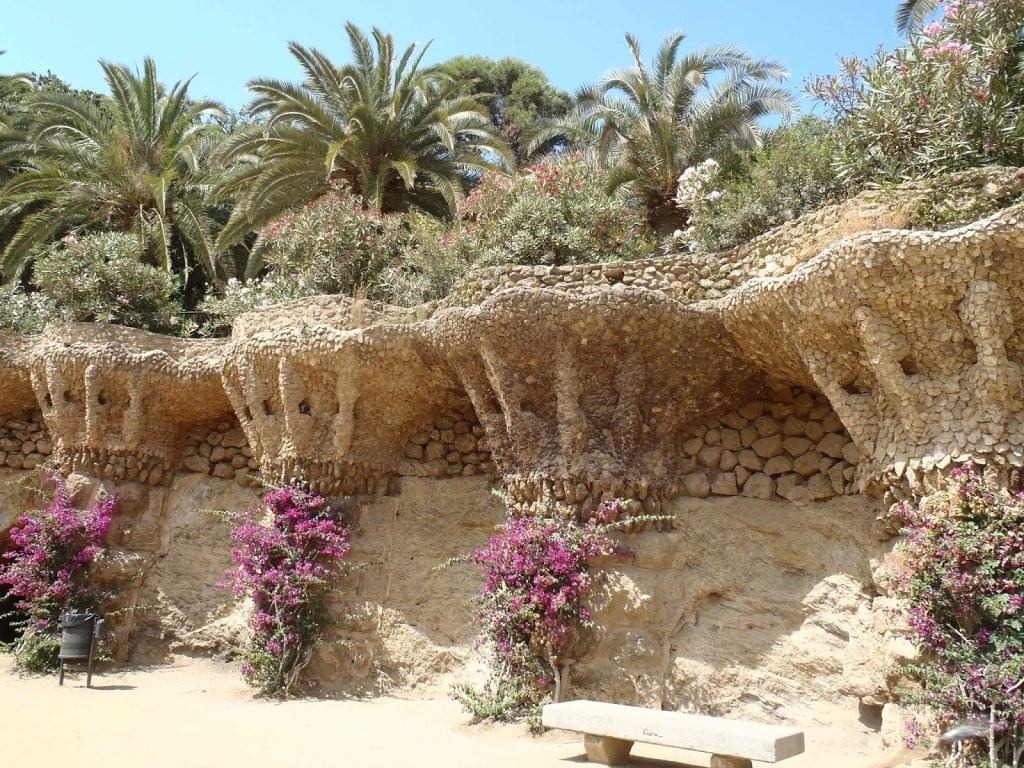 Pour notre deuxième arrêt de la journée, nous avons visité le parc Gruëll, commandé par l’industriel Eusebio Gruëll, dessiné et construit par Gaudi en 1910. On reconnaît l’influence maure, gothique et moderne dans l’ensemble très original. Voici quelques photos :
