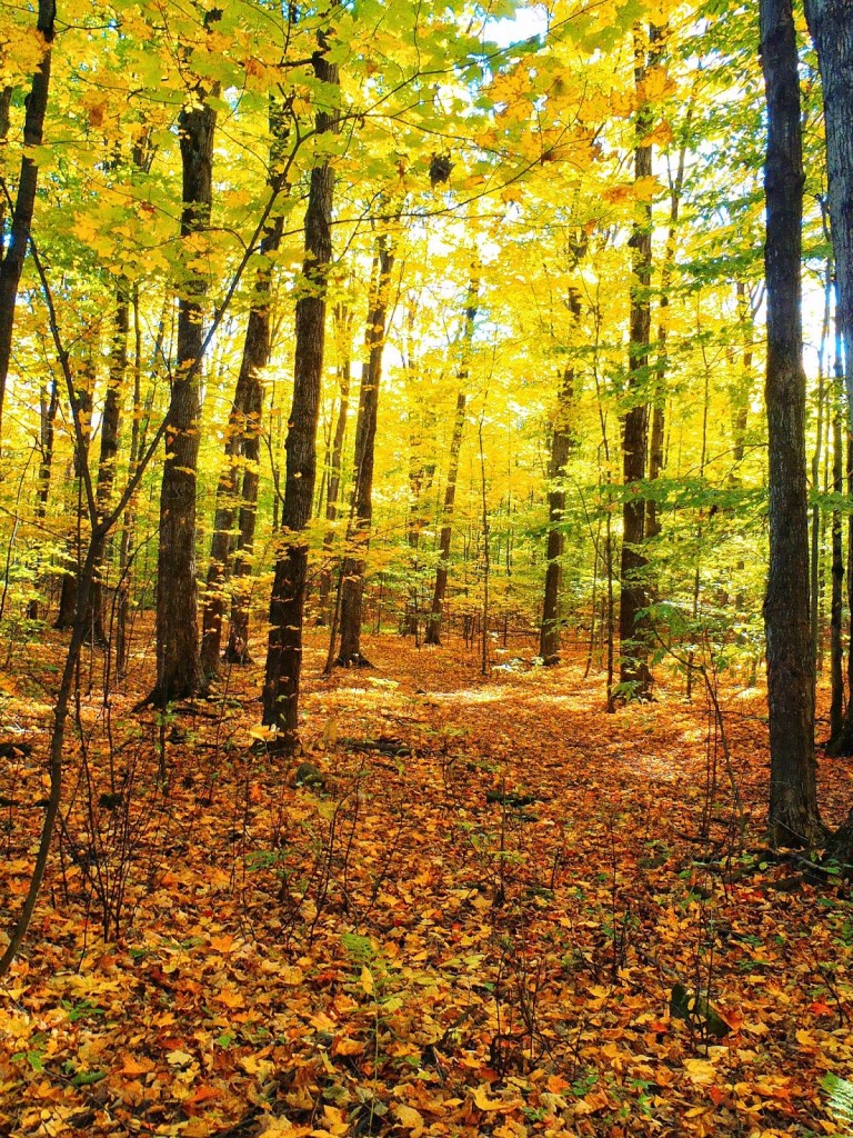 Alors que Denis s’arrêtait à tous les deux pas pour capter une scène, je laissais mon cerveau vadrouiller entre les couleurs automnales, les rayons du soleil qui jouaient dans le wish wish de nos pas dans les feuilles déjà tombées, les chants des oiseaux qui habitent encore nos forêts et le babillage des gens qui arpentaient sereinement les sentiers. Je m’arrêtais pour observer un écureuil noir, une grosse noix dans la gueule, courir sur une branche pour atteindre son nid. Craint-il que nous lui chipions son butin ?