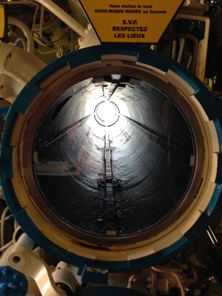 Derrière moi, j’entends le commentaire d’un visiteur : « Pour devenir sous-marinier, il faut être bâti sur une ossature de chat et mesurer moins de 5 pieds 5 pouces… c’est sûr… » Considérant que les sous-mariniers se trouvaient à plusieurs centaines de mètres sous la surface de l’eau, ils n’étaient certainement pas claustrophobes.