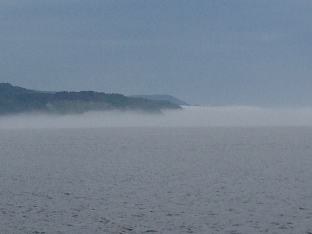 Le brouillard colle à la rive au sud du quai. Voyez cette mer d’huile, une belle balade sur le fleuve tranquille en perspective.