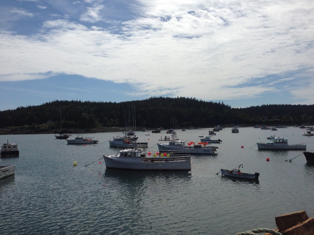 Ce fut un choix judicieux même si cela a beaucoup réduit notre vitesse, car les courbes et les espaces restreints imposaient un maximum de 45 milles à l’heure (73 km/h) et souvent, beaucoup moins. Au moins, nous longions véritablement la côte. Si nous roulions en pleine forêt la plupart du temps, les arbres nous empêchant de voir la mer, nous avons apprécié les incursions au bord de la mer lorsque la route traversait des villages côtiers. D’ailleurs, voici deux photos prises lors d’un arrêt au village de pêcheur de Cutler. Juste par l’odeur qui traînait sur le quai, je savais qu’on y pêchait le homard.