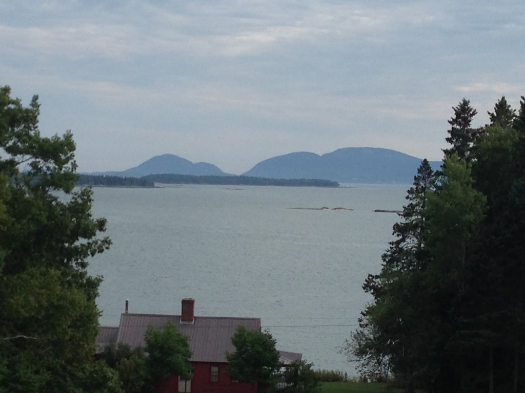 Puis, un peu plus au sud, nous avons emprunté la 187 pour nous retrouver encore à proximité de la mer. En tout, nous avons mis plus de quatre heures, incluant de nombreux arrêts, pour faire la route qui, normalement ne prend que deux heures trente minutes. Mais nous avions des éclats de joie dans les yeux. Voici une photo prise à notre dernier arrêt, juste en face de la Frenchman Bay (la baie du Français), d’où nous apercevions les montagnes sises sur Mount Desert Island (île des monts désert) où se trouve Bar Harbor. Nous visiterons tout ça demain.
