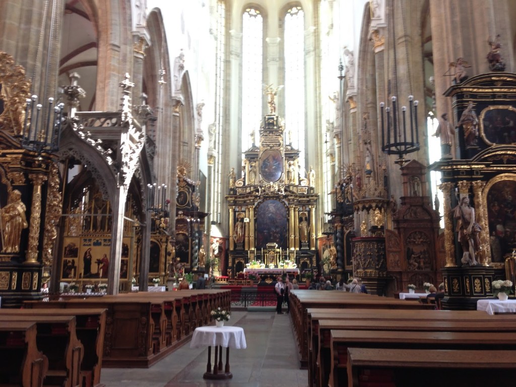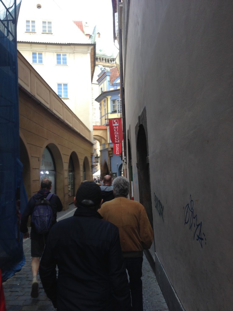 le carré au centre de la staré mĕstro (vieille ville). Les rues qui rappellent l’époque médiévale sont étroites, croches et fort achalandées par les visiteurs, les travailleurs et les motos. Parfois, il y avait même des autos. Ça prend de la patience !