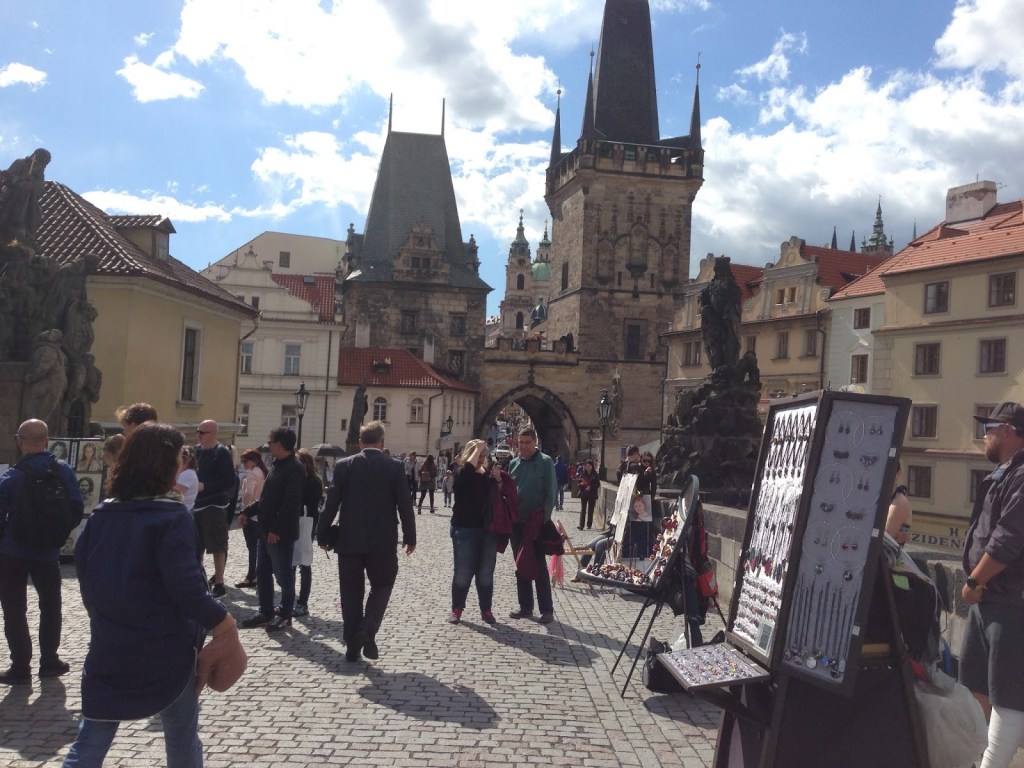 La ville vit à un rythme plus calme que ce que nous connaissons à Paris, Londres, Montréal ou même Québec. Pourtant, il y a des gens partout. Des touristes bien sûr, mais surtout des Tchèques. Si Ottawa me fascine par le nombre de gens qui se promènent dans les rues avec un café à la main, ici, les gens fument en marchant. Heureusement, le vent présent élimine la fumée au fur et à mesure.