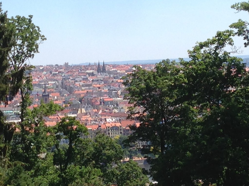 La randonnée sur un sentier de pierres qui descend en lacet nous apporte autant de surprises que le sommet lui-même. Je m’étonne d’ailleurs qu’il y ait si peu de visiteurs en ce lundi 19 juin. Tant mieux pour nous, car nous pouvons nous y promener à souhait sans nous presser ni nous faire bousculer. C’est d’ailleurs mon coup de cœur aujourd’hui autant que pour toute la visite de Prague. Le coin est charmant et très bien aménagé.