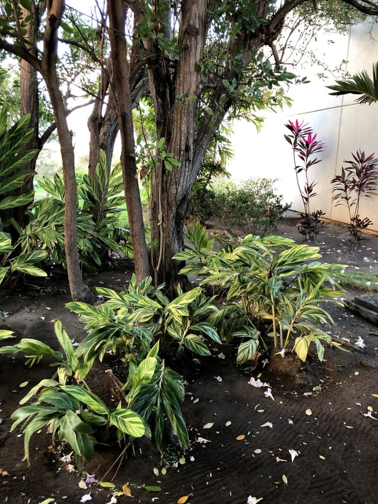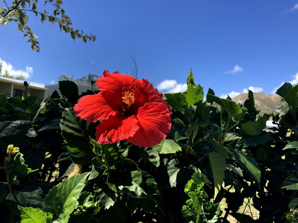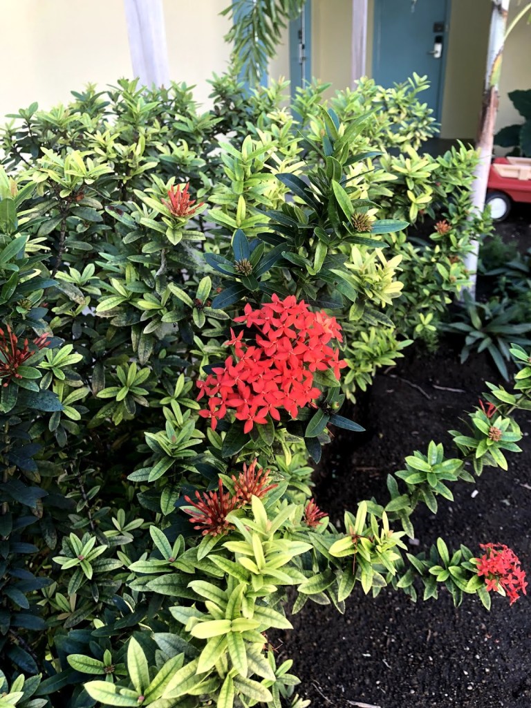 Il y a l’allée qui mène aux services principaux, comme la salle à manger, le hall de l’hôtel, l’information, la piscine. Dans un autre hôtel, nous nous retrouverions dans un couloir au plafond et murs de ciment. Là-bas, tout se passe en plein air.