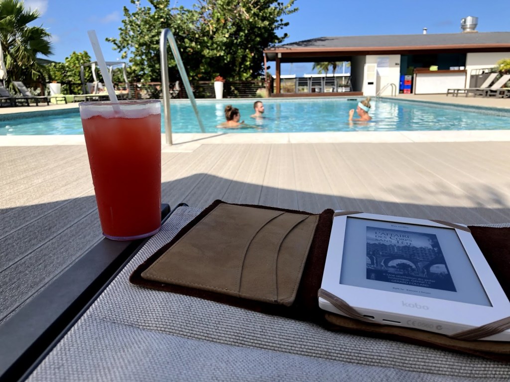 Nous avions nos habitudes. D’abord la piscine. Vers 15 h, en revenant d’une sortie ou d’une simple marche, nous nous installions près de ce plan d’eau. La saucette dans une piscine presque vide d’humains nous aidait à relaxer. Puis, deux apéros installés sur la petite table entre nos deux chaises longues, à l’ombre s’il vous plaît, nous plongions le nez dans nos tablettes pour lire. Le repos total.