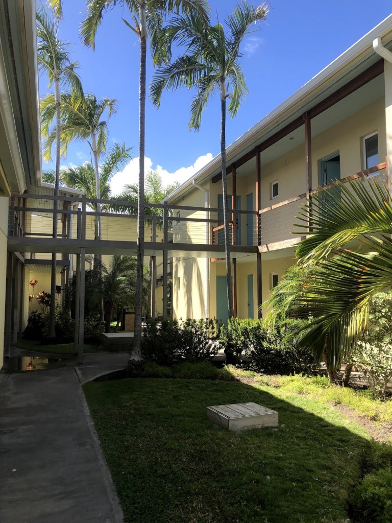 L’endroit est magnifique. Il se situe à 200 mètres d’une plage sur l’Atlantique et à deux kilomètres de la plage Timothy sur la mer des Caraïbes. Les appartements se retrouvent par groupe de six dans des unités séparées. Les sentiers qui les réunissent sont bordés d’arbres et de fleurs. Voici quelques photos de ce bel environnement: