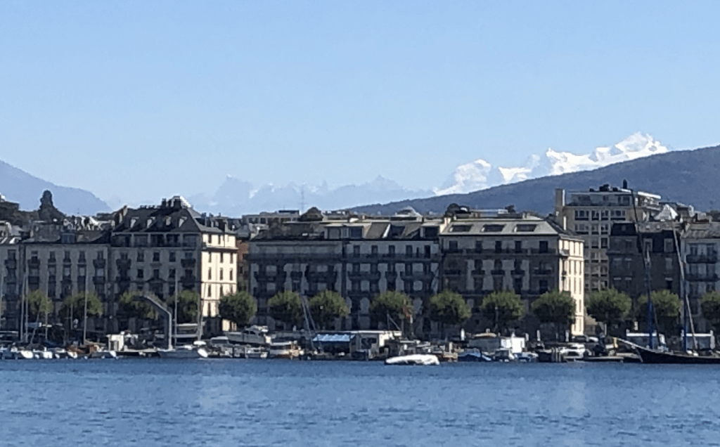 Quand on marche le long du quai du Mont-Blanc, on la voit, cette merveilleuse montagne, la plus haute des Alpes. On aperçoit son sommet enneigé du Mont Blanc. On peut dire que l’on peut voir la France de Genève !