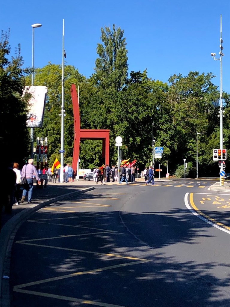 Genève, située dans la partie sud-ouest du lac Léman et sur les deux rives du Rhône, est la deuxième ville la plus peuplée de la Suisse, après Zurich. Elle donne aussi son nom au Canton dans lequel elle se trouve. Sa population permanente est d’environ 200 000 habitants. Selon notre guide Olga, quelques 30000 d’entre-eux sont des représentants d’autres pays en raison de leur travail pour l’une ou l’autre des 23 organisations internationales.