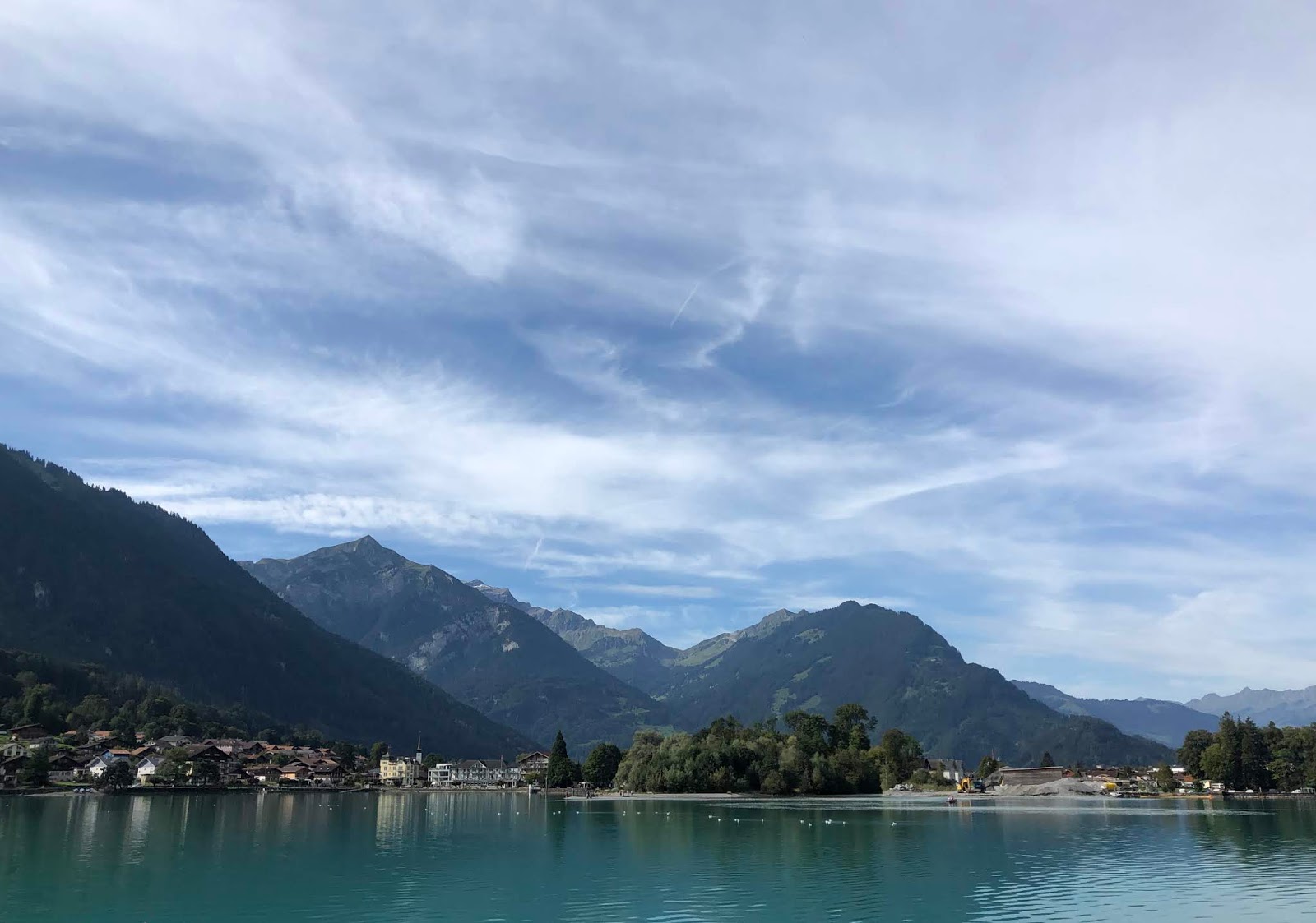 Cette ville tire son nom (entre deux lacs) de sa situation entre les lacs Thoune et Brienz, deux lacs alpins dont les noms viennent de d’agglomération sise en bordure de chacun des lacs. Bien qu’ils soient traversés par la même rivière, ils ne sont pas de la même couleur. L’Aar, alimenté par les glaciers, traverse d’abord le lac Brienz. Il y décharge les éléments minéraux qui, reflétant le soleil, lui donne une coloration verte. Mesurant quinze kilomètres de longueur et en moyenne deux kilomètres et demi de large, le lac est connu pour ses berges abruptes et sa profondeur. Le Lac Thoune, visité en deuxième par l’Aar présente une couleur moins verte. Il est également très profond, un point à 800 mètres. De 1945 à 1964, l’armée suisse a immergé plus de 3000 tonnes d’explosifs, des restes de la Seconde guerre mondiale.