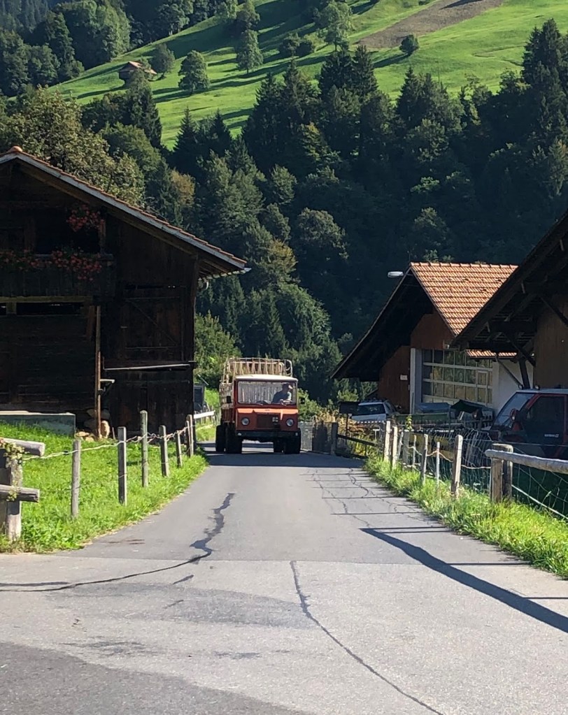 On ne peut atteindre Habkern que par une petite route en lacets où se croisent les autobus, les camions de livraisons, les autos et les vélos. Je suis si contente de ne pas conduire…