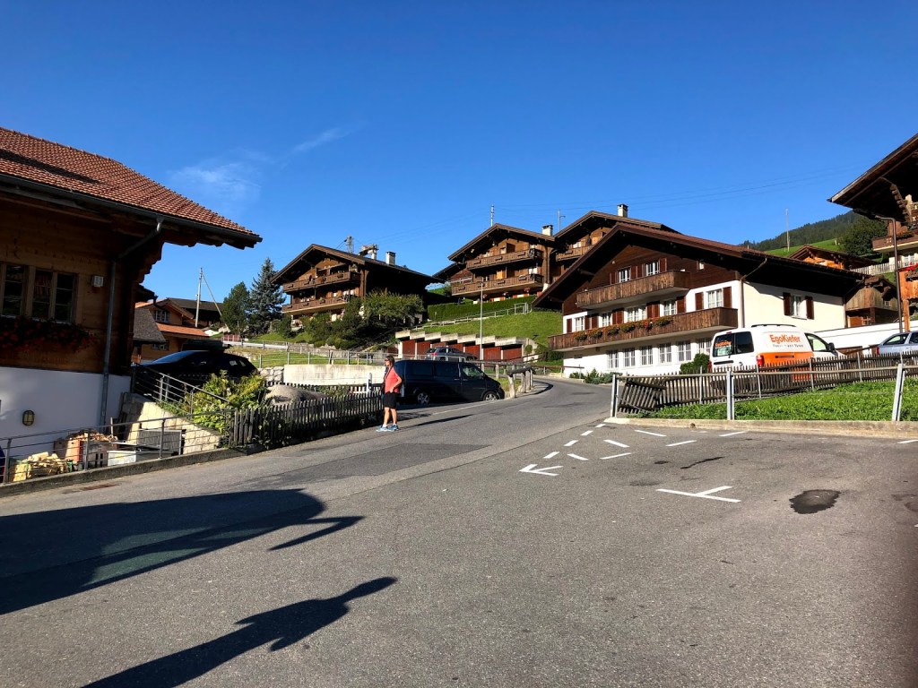 Puis, la visite terminée, j’ai pris quelques minutes pour prendre en photo ce petit village de 643 habitants. Les maisons typiquement suisses semblent juchées un peu partout dans la montagne. Remarquez le ciel bleu foncé et la netteté de l’air. Il faisait très beau, mais aussi, il faut compter sur l’altitude pour rendre les choses plus vivantes.