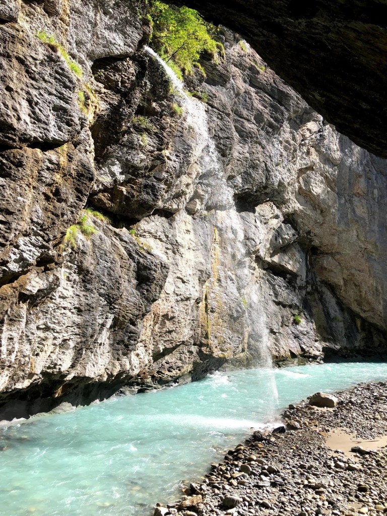 Nous avons finalement compris que « AareSchlucht » se traduit en français par « les gorges de l’Aar ». Le sentier bien aménagé nous fait passer le long de la rivière afin que nous puissions observer ces gorges magnifiques et sa roche calcaire toute travaillée par l’eau. Ces gorges se trouvent sur le territoire de la commune de Meiringen, dans le Canton de Berne en Suisse. Une petite recherche sur le sujet m’a permis de trouver les informations suivantes.