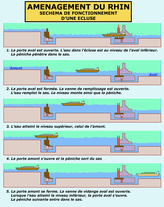 Mécanisme des écluses sur le Rhin est fort intéressant.