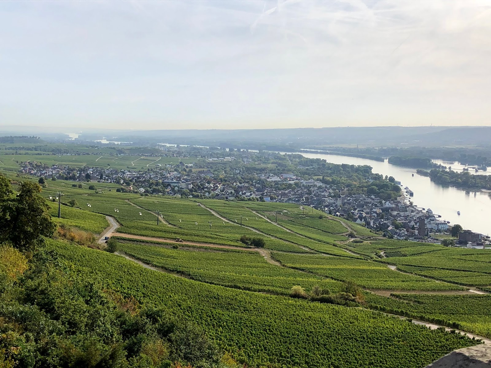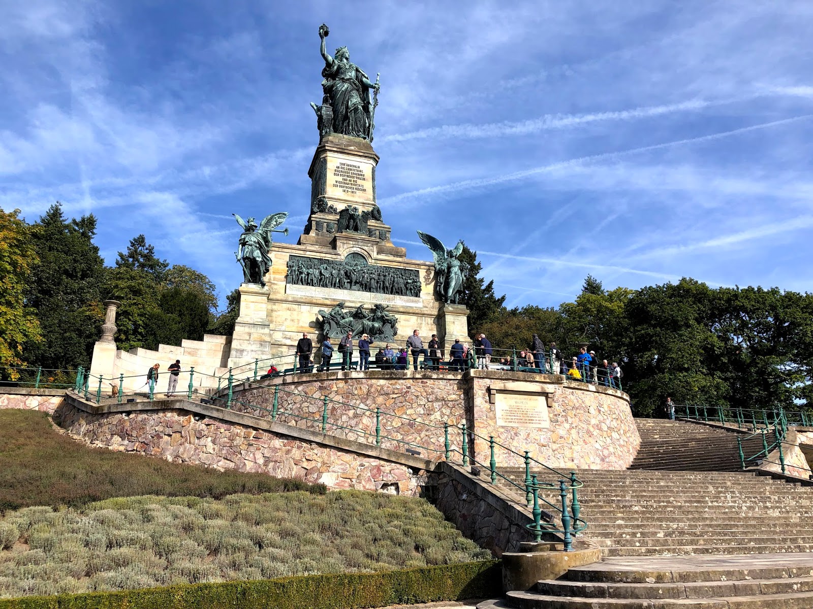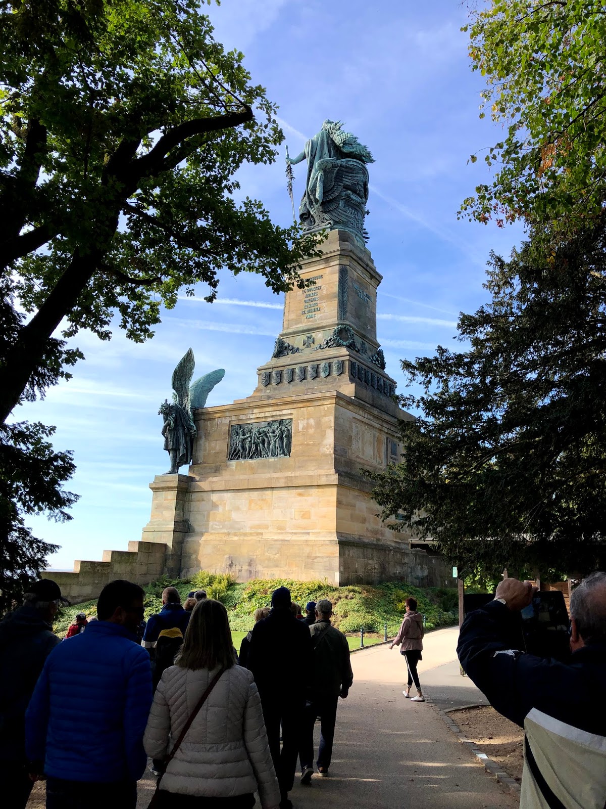 Puis, nous nous rendons au téléphérique pour visiter le monument Niederwalddenkmal. Ce monument commémore l’unification de l’Allemagne en 1871. Sa conception et sa construction ont pris 12 ans. La décision de construire ce monument suit de près la fin de la guerre franco-allemande de 1870 et de la création de l’Empire allemand qui supplantait la Confédération allemande. En plus de marquer un fait important de l’histoire allemande, le trajet en gondole et la visite du site nous ont permis de voir la région vinicole dans son ensemble.
