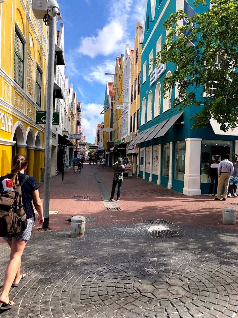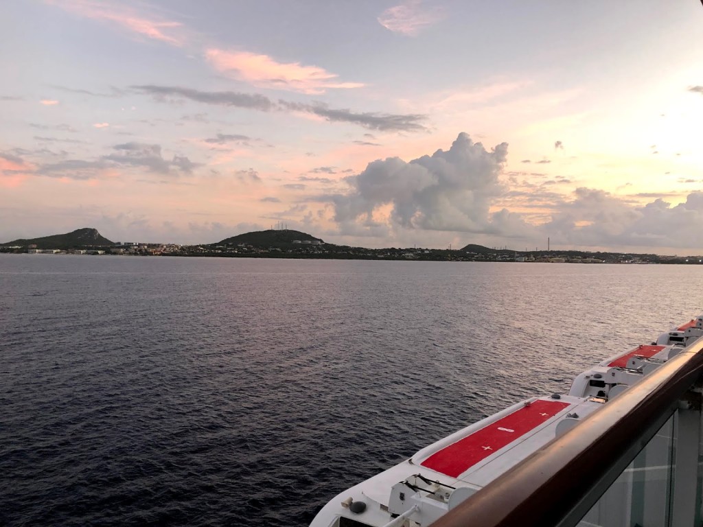 J’adore prendre en photo quand le soleil se lève sur le port que nous visitons. Aujourd’hui, Willemstad se montre très colorée même si l’angle du navire ne me permet de voir qu’un lever partiel. Lève-tôt, je me précipite sur notre patio pour regarder la nuit s’éteindre sur l’océan et la ville encore endormie s’ouvrir aux visiteurs qui viennent de la mer.