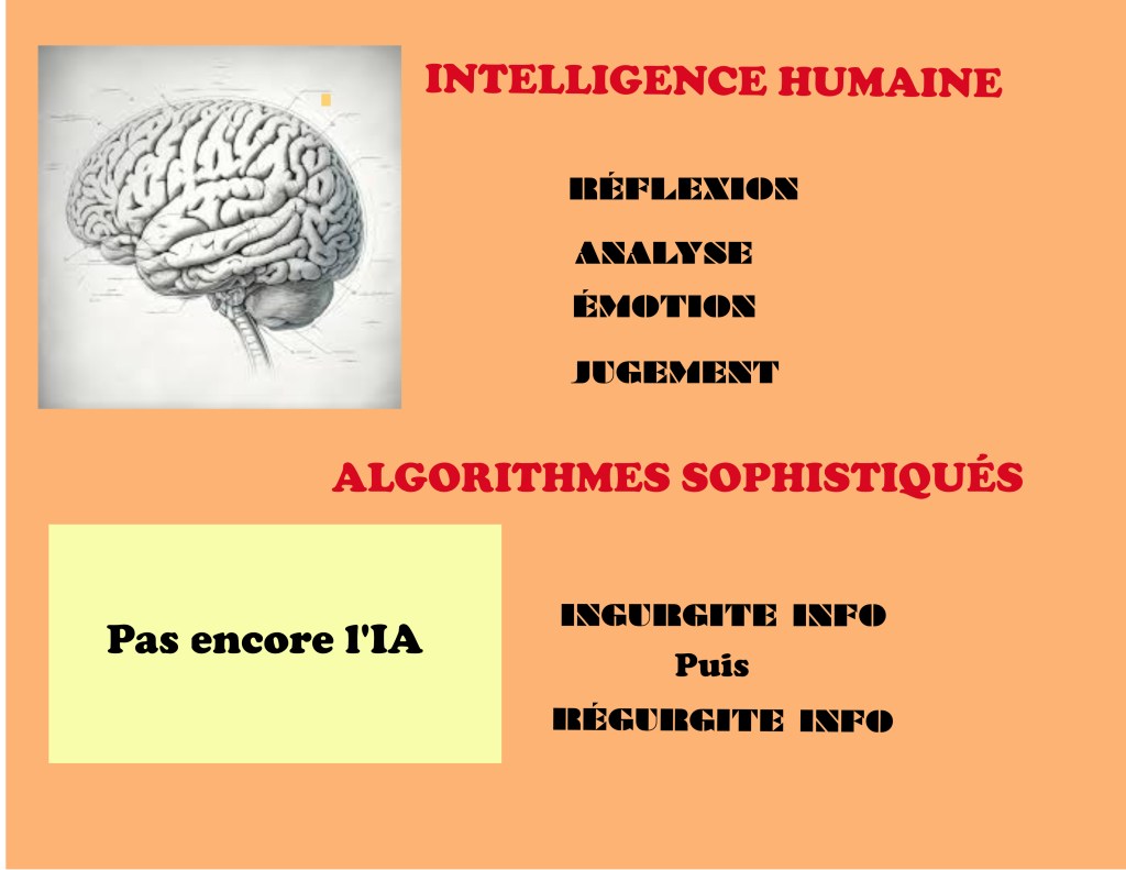 J’admets la pertinence des logiciels analytiques, mais ça demeure des programmes bourrés d’algorithmes qu’on a remplis d’informations. Utiles, vrai ! Mais intelligent ? C’est comme affirmer que la Bibliothèque nationale du Québec est intelligente parce qu’elle contient plus de livres que ce que nous pourrons jamais lire dans toute notre vie.