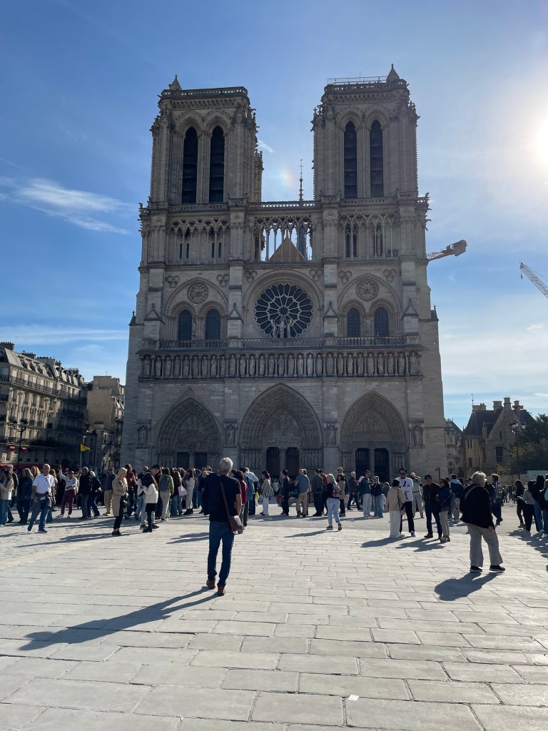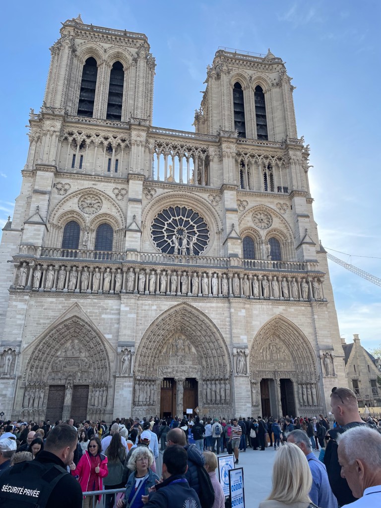 Bon ! Me voilà encore assise dans une nef à attendre mon conjoint qui tient à examiner chaque pierre, chaque dalle, chaque vitrail d’une église. Bien sûr, je tenais à entrer dans la Cathédrale Notre-Dame reconstruite après l’incendie majeur de 2019. Mais…